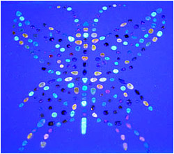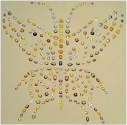 Aurora Butterfly of Peace on Display at Smithsonian The Aurora Butterfly of Peace, an artistic display of 240 loose, natural-color diamonds, is now on exhibit at the Smithsonian National Museum of Natural History in Washington, DC. The suite was assembled over the last 12 years by Alan Bronstein and Harry Rodman of Aurora Gems Inc. in New York. It shows a full palette of diamond colors in a variety of cut styles, with a total weight of 166.94 carats. Dr. Jeffrey Post, curator of the Smithsonian's National Gem and Mineral Collection, estimates that about one million people will have seen the Aurora Butterfly of Peace at the museum before the exhibit closes on March 23. Displayed in lighting that alternates between natural and ultraviolet every 15 seconds, the collection also demonstrates the fluorescent properties of diamond. The Butterfly's creators are known for the Aurora Pyramid of Hope of 260 natural-color diamonds, which has been on display at the American Museum of Natural History in New York since 1989. For more information on this exhibit, call the Smithsonian Institution at 202-633-1000 or visit http://www.si.edu. Stuart Overlin |